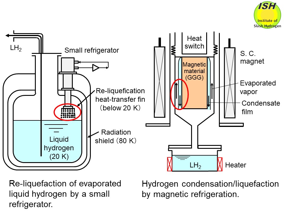 the re-liquefaction of evaporated gas in the liquid hydrogen tank for the